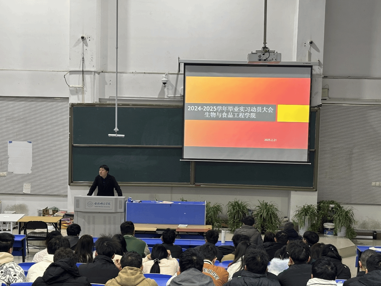 为确保 2025 届毕业生毕业实习工作正常有序开展,提升学生实践能力,2 月 21 日,永利集团304am登录在逸夫楼西阶1教室召开2025年度毕业实习动员大会,全面部署毕业实习工作。学院实践教学部主任张雁,指导教师杨俊杰、王恒生、张海玲,辅导员李万成、黄洁,2021 级生物技术、生物制药和食品质量与安全专业全体学生参加动员大会,会议由张雁主持。