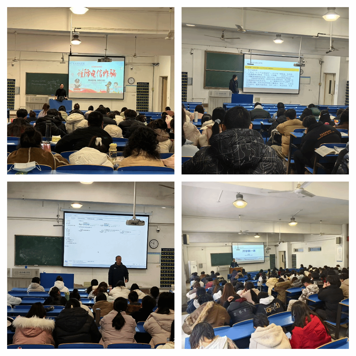防诈安全专题宣传筑牢防火墙。开学以来,辅导员在各班级均开展了一次反诈专题宣传,做到了反诈安全工作全覆盖。3月6日下午,特邀合肥市公安局锦绣派出所警官李玉成在锦绣校区逸夫楼西阶教室开展“防范电信诈骗”专题讲座,讲座由辅导员徐浩然主持,全体辅导员和200余名学生聆听了讲座。李玉成警官结合辖区发生的真实诈骗案例,通过剖析网络刷单、虚构活动中奖、网络交友诈骗、网络游戏诈骗、杀猪盘诈骗等常见的诈骗手段,详细介绍了电信网络诈骗的基本类型和防范手段,揭露了诈骗分子惯用的作案伎俩,让同学们对电信网络诈骗的各种圈套有了更加清晰的认识,进一步提高了同学们对各类电信网络诈骗的鉴别力和反诈能力。