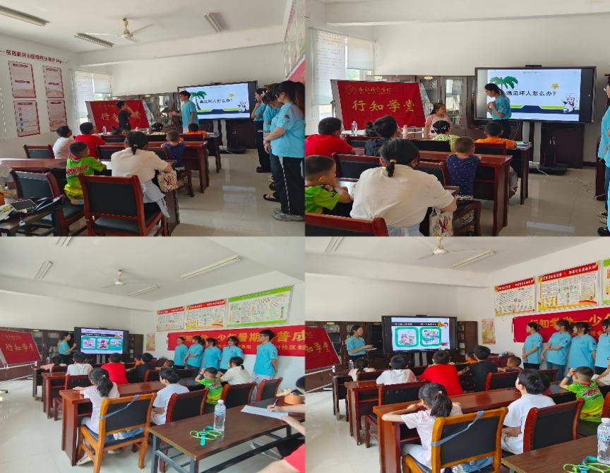 开班仪式后,学堂进行了开班第一课,小先生向各位小学员介绍了此次科普公益活动的课程内容,并以小游戏的方式让小先生与小学员快速熟络,增添课堂趣味性。最后,小先生们以课堂情景剧的方式,分别从课堂安全、家庭安全和社会安全三方面给各位小学员们上了一堂安全教育课。