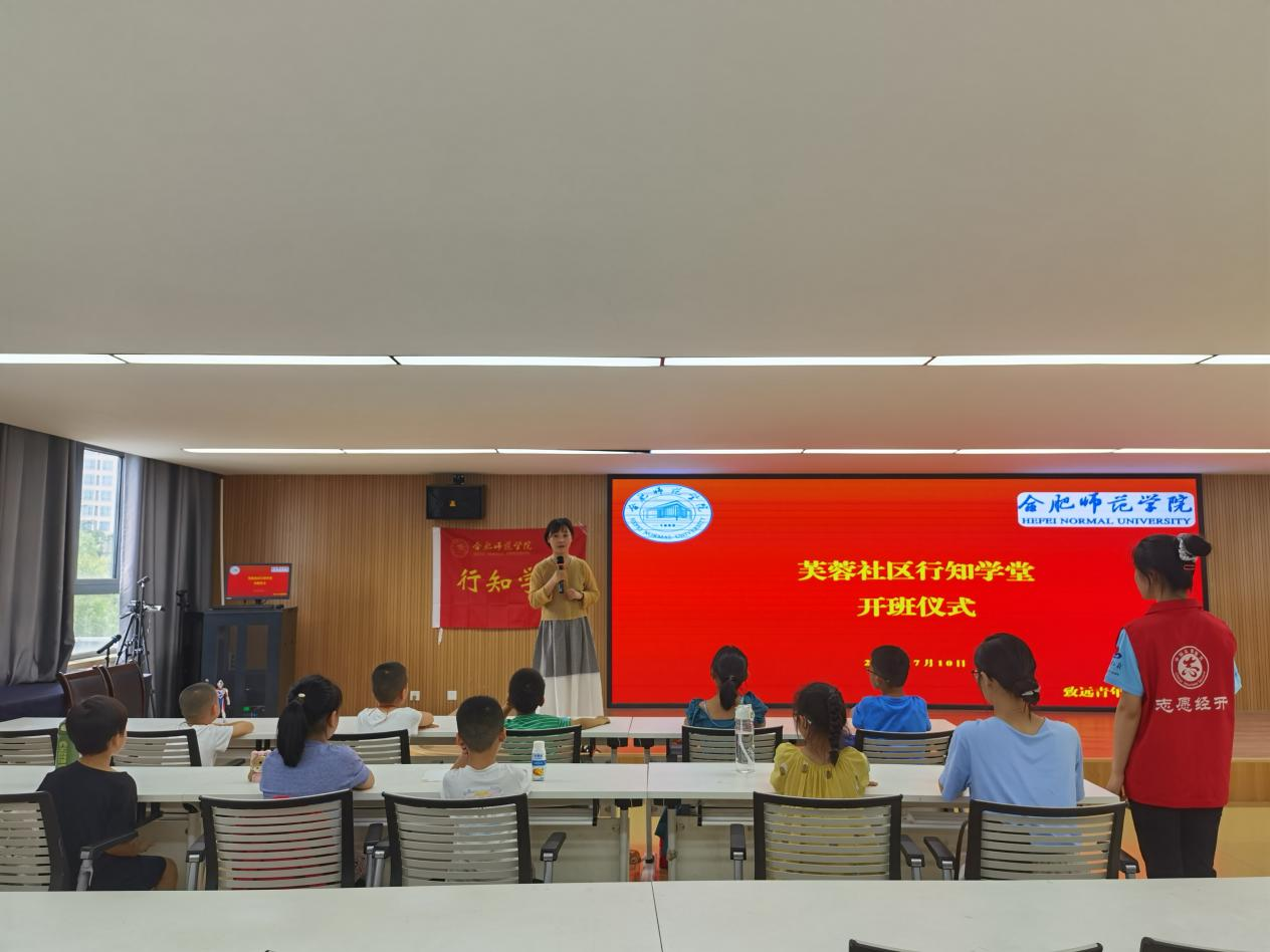 本网讯 弘扬行知文化,践行行知精神,绽放青春风采。7月10日,永利集团304am登录牵头举办的芙蓉社区行知学堂在合肥市蜀山区芙蓉社区党群服务中心正式开班。学堂指导教师王玲玲、8名“小先生”、全体小学员及家长共同参加开班仪式。