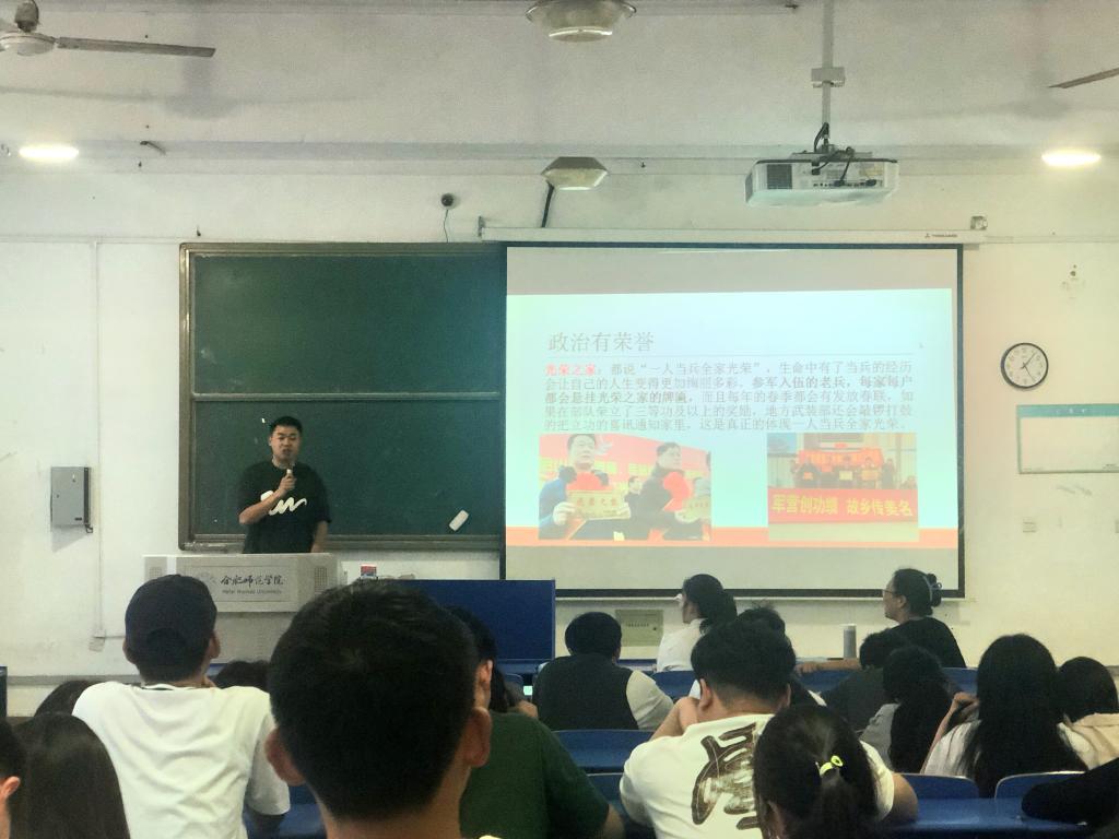 会上,杨娜传达了学校关于征兵工作的有关部署,解读了最新的征兵政策、应征入伍的报名条件以及基本流程,详细介绍了大学生参军入伍后国家的资助办法和优惠政策,对同学们关心的大学生应征入伍可享有的优先考学提拔、学费报销、退伍复学和就业优惠等优抚、激励政策进行了详细解读。