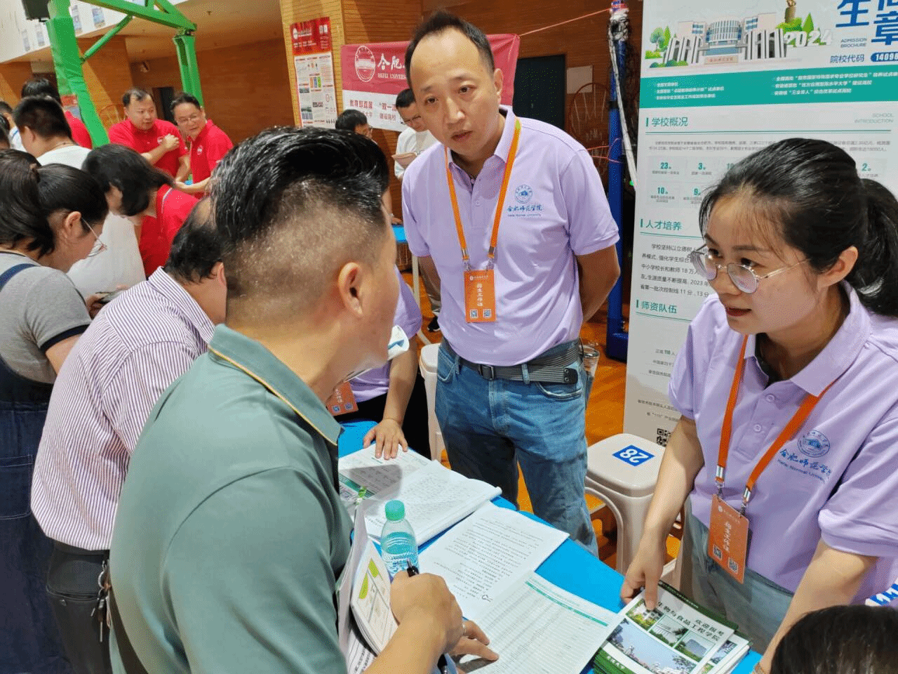 6月26日至6月27日,在学院朱桂兰院长和王伟副院长的带领下,由16位教师组成招生宣传工作小组,分别赴合肥四中、合肥七中、合肥十中、霍邱一中、霍邱二中、铜陵一中和铜陵中学等学校开展现场招生宣传活动,为考生家长提供了高水平和高质量的招生咨询服务。