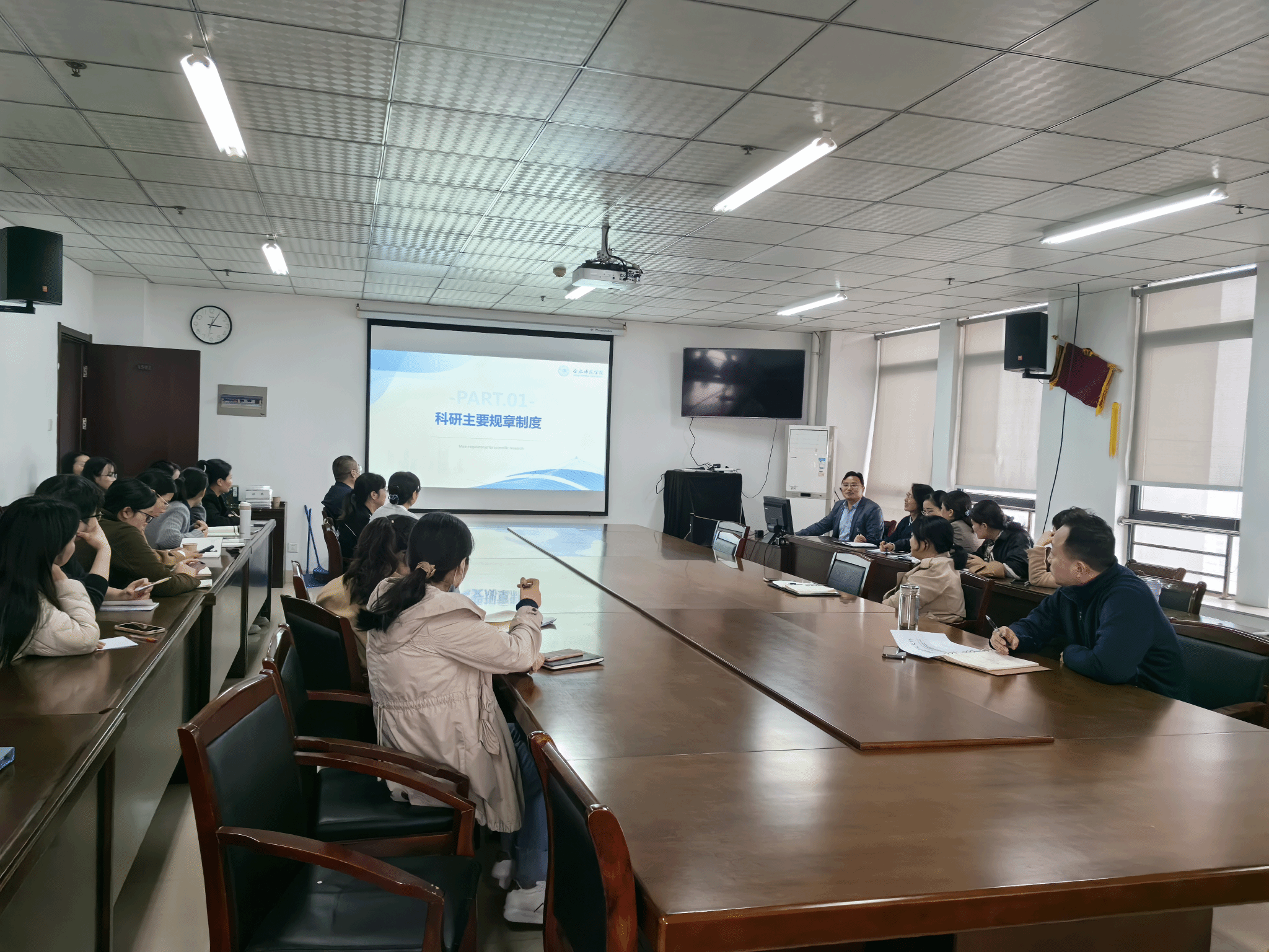 吕建国教授详细解读了学校科研管理的主要规章制度,结合学校实际对《永利集团304am登录预防与处理学术不端行为实施细则》《永利集团304am登录科研促进教学实施办法》《永利集团304am登录横向科研项目及经费管理办法(试行)》等作了详细说明,对文件中需注意的问题加以提醒;并结合科研管理项目、成果、奖项“三件套”理念,强调从项目要成果,由成果出奖项,注意改变重立项轻建设的现状。提出纵向与横向项目一体双翼、齐头并进的发展思路。鼓励学院营造科研氛围、凝练研究方向、打造学科科研团队。最后系统介绍了2024年度学校的科研工作计划。