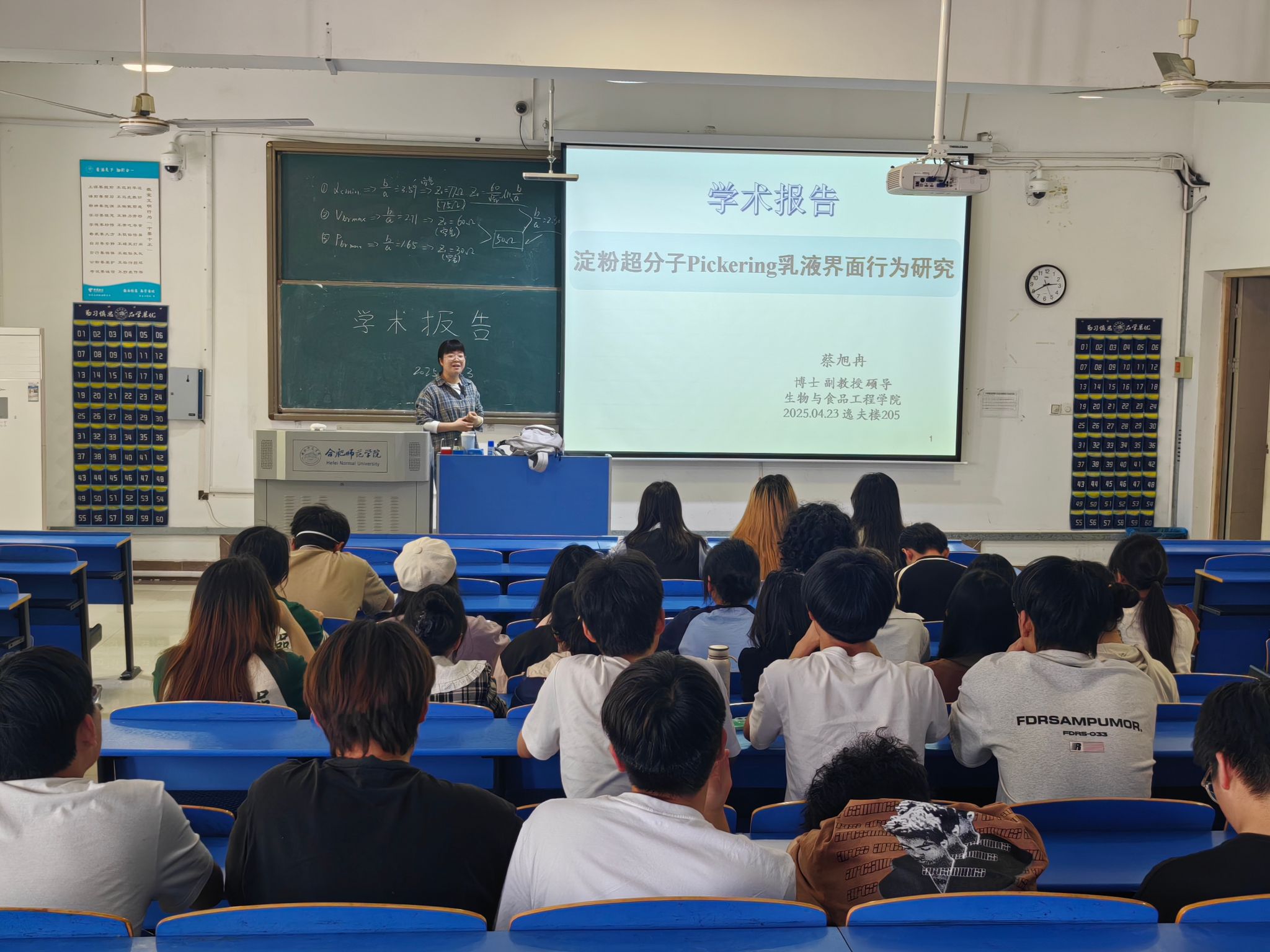 2025年4月23日下午,永利集团304am登录在锦绣校区逸夫楼205教室举办学术讲座,学院教师蔡旭冉分享了“淀粉超分子Pickering乳液界面行为研究” 的主题报告。