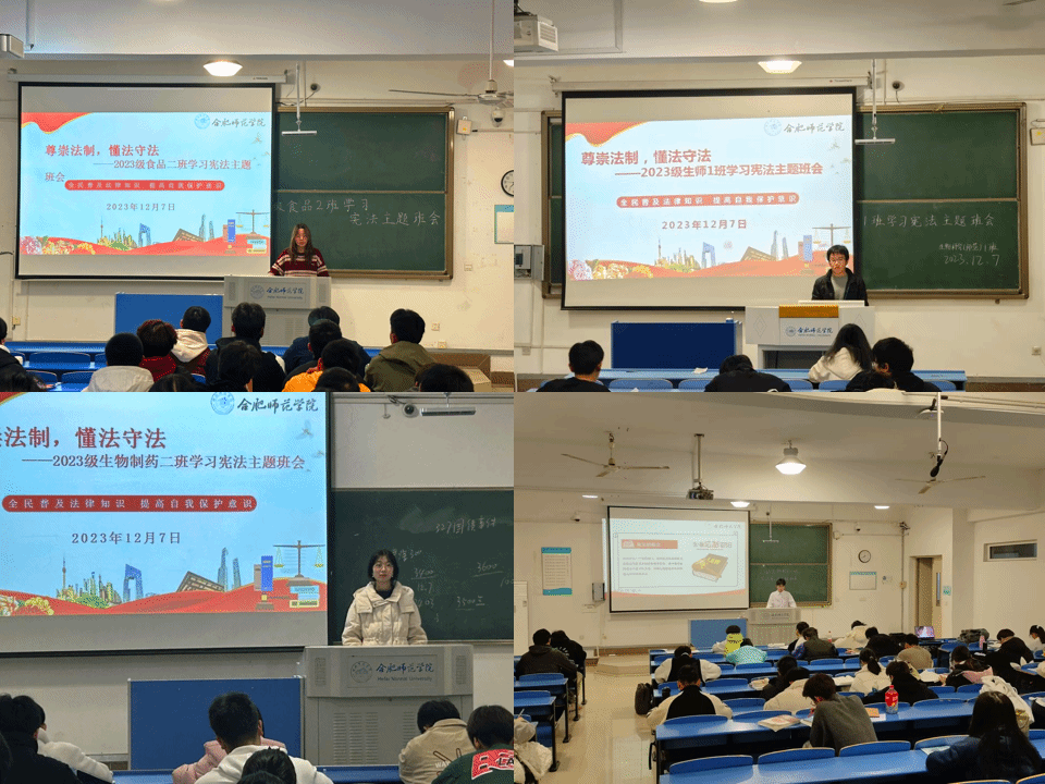 会前,辅导员老师们共同备课,相互讨论,形成了统一的班会课件。班会上,各班主讲人分别围绕宪法的概念、宪法的性质、宪法的特征以及我国宪法的发展等方面为同学们进行了深入细致的讲解,引导同学积极主动进行宪法学习活动,让同学们深刻认识到法治建设的重要性,倡导同学们积极行动起来,做到知法、懂法、守法,共创法治校园。