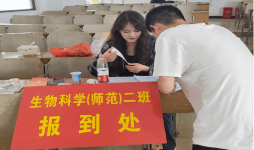 在报到点内,22级生物科学(师范)2班入党积极分子庞宇晴为新生耐心核验新生报到资格,引导他们缴费、领取校园卡等。志愿者们忙碌的背影暖心靓丽,提示的话语真诚温馨。