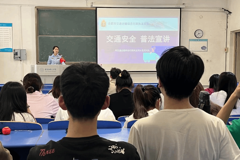 魏咏露在逸夫楼101教室进行了“交通安全、普法宣讲”宣讲,了解学生经常乘坐交通的方式和曾经遇到的问题,教会学生如何识别非法运营车辆,如何避免上当受骗等,学生们积极参与互动,现场气氛活跃。