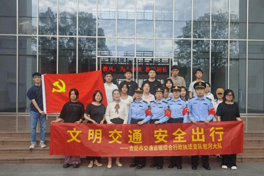 本网讯 为深入学习宣传贯彻党的二十大精神,切实践行“我为群众办实事”。6月7日下午,永利集团304am登录学生第一党支部书记高欢邀请了合肥市交通运输综合行政执法支队包河大队高铁南站中队副队长魏咏露一行5人来校进行“文明交通、安全出行”宣讲活动。永利集团304am登录党委书记郭桃芬热情接待了魏咏露一行。