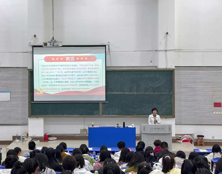 开班仪式后,郭桃芬以“中国共产党的光辉历程”为主题,为全体学员生动讲授第一堂党课。她分别从“中国共产党建立的背景和经过”、“中国共产党领导革命、夺取政权的浴血奋战史”、“中国共产党执掌政权的历史”三大方面进行讲解,她希望同学们牢记习近平总书记的殷殷嘱托,奋进新征程,建功新时代,做忠诚可靠的中国特色社会主义建设者和接班人。