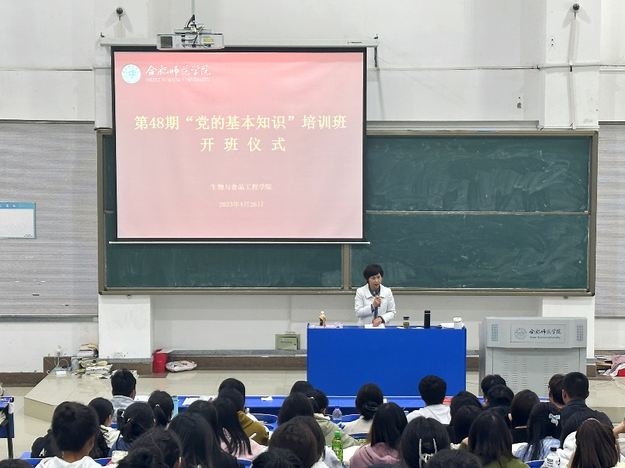本网讯 为深入贯彻党的二十大精神,切实加强对入党积极分子和发展对象的培养、教育和考察,提高思想政治素质。4月26日中午,永利集团304am登录在逸夫楼西阶2教室举行第48期“党的基本知识”培训班开班仪式。永利集团304am登录党委书记郭桃芬出席仪式,142名入党积极分子和20名发展对象参加了开班仪式,仪式由党课培训班主任梁悦主持。