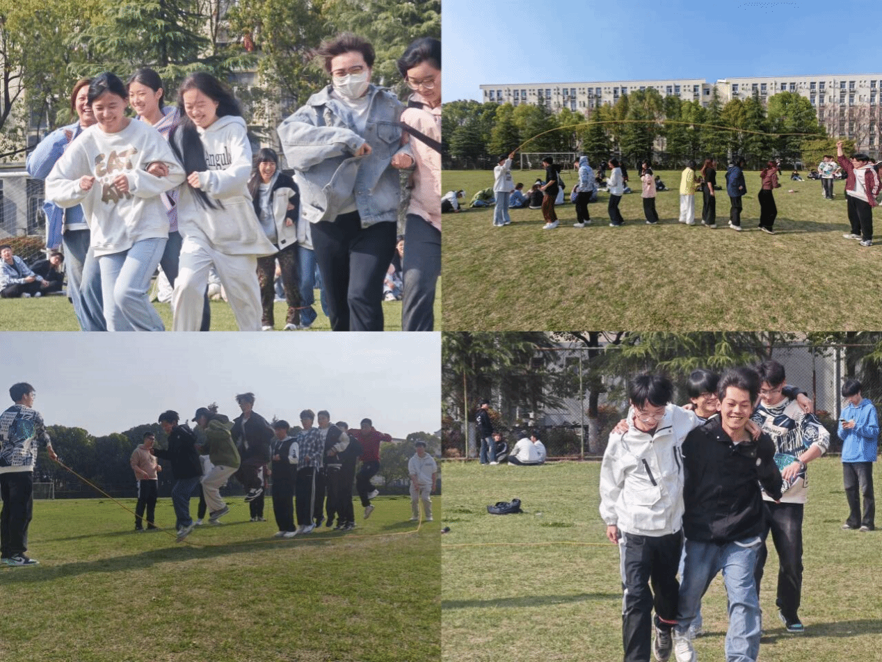 运动会设置了两人三足接力、跳大绳、趣味拔河、乒乓接力等多项兼具趣味性与挑战性的项目。参赛队员以班级为单位组队,在比赛中默契配合、各显神通。尤其在“两人三足接力”环节,队员们齐心协力、奋力拼搏,同学们的呐喊声将活动推向高潮。