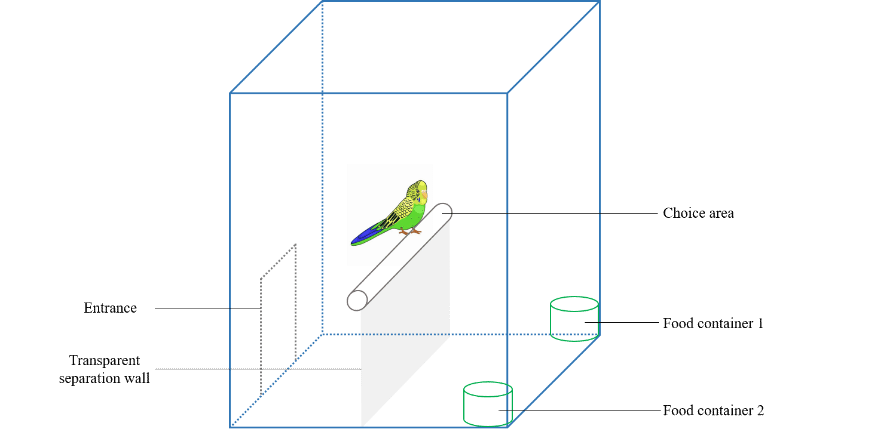Contrafreeloading行为作为动物行为学领域的特殊现象,特指圈养动物倾向于通过自主努力获取食物而非直接取用易得食物的行为特征。本研究以虎皮鹦鹉(Melopsittacus undulatus)为模式动物,通过建立包含三种影响因素的实验范式,系统观测该物种在自由取食装置与任务型取食装置之间的行为偏好。实验结果表明:虎皮鹦鹉群体表现出一定的Contrafreeloading行为倾向,其行为强度受到训练经历和取食难度的显著调节。该研究首次在虎皮鹦鹉中揭示Contrafreeloading行为的存在特征及其调控机制,为优化虎皮鹦鹉这一广受青睐的笼养鸟类的饲养管理策略、提升其圈养福利水平提供了科学依据,同时为建立基于物种特异行为特征的动物福利评估体系提供了重要实证参考。